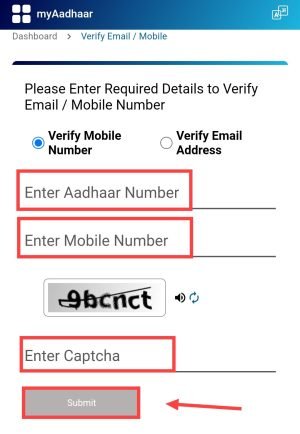 • Enter Mobile Number: इसके बाद इसमें आपको वो नंबर डालना है जोकि आपको लगता है की वह आपके आधार कार्ड के साथ जुड़ा हो सकता है।