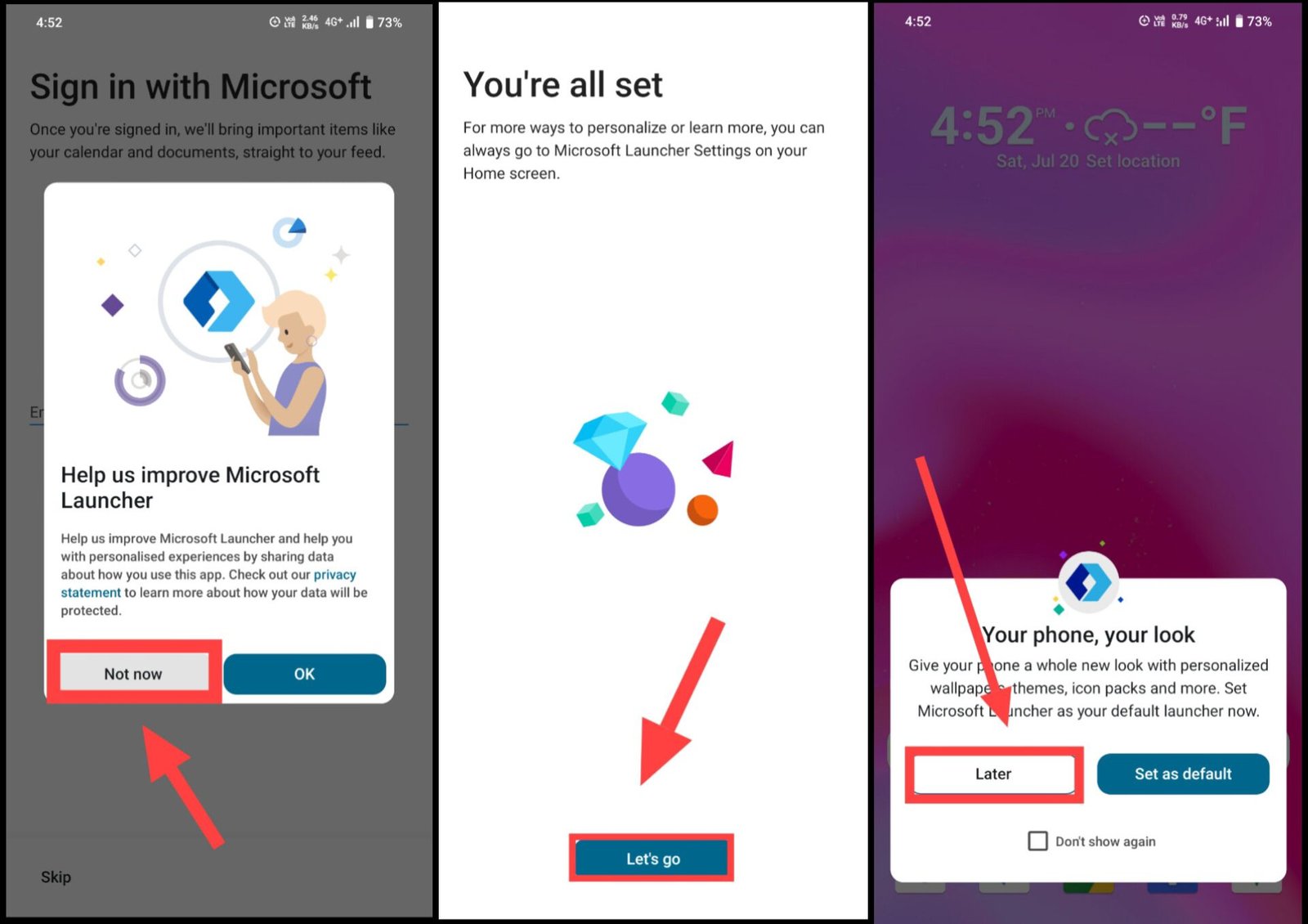 4. जब पूछा जाए तो आप इस लॉन्चर को Default Launcher बना सकते हैं, या फिर Later चुनें।