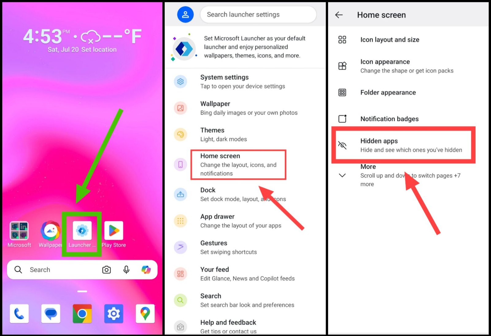 अगर आपके फोन में इनबिल्ट App Hide फीचर नहीं है, तो आप Microsoft Launcher का इस्तेमाल करके आसानी से ऐप्स को छिपा सकते हैं। ये स्टेप्स फॉलो करें: