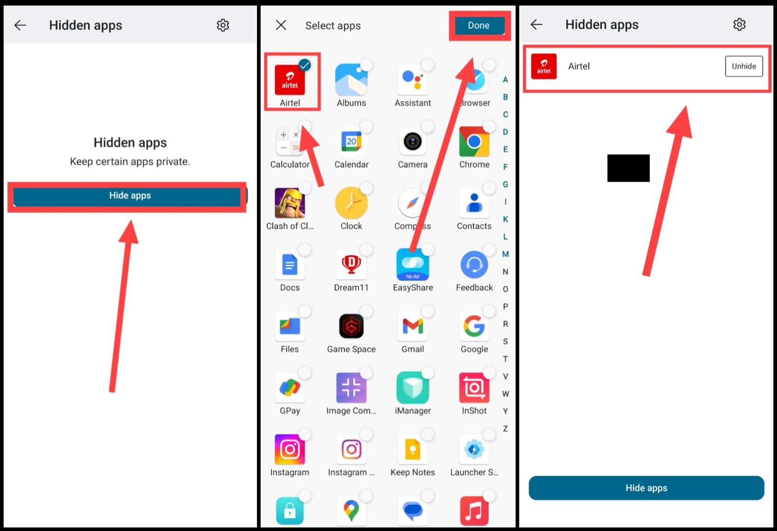 6. इसके बाद आपकी सभी Hidden Apps एक स्क्रीन पर दिखेंगी, जिन्हें आप आसानी से चला सकते हैं।