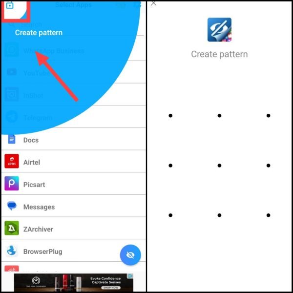 3. अब Create Pattern पर टैप करें और एक सिक्योर पैटर्न बनाएं — यही लॉक आपके Hidden Apps को खोलने में काम आएगा।