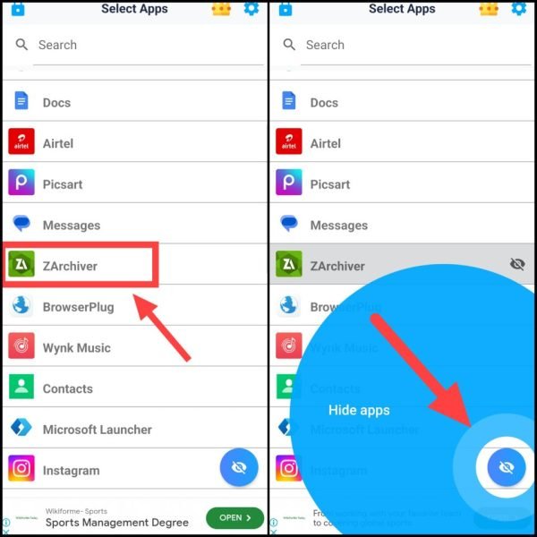 - उस ऐप का नाम सिलेक्ट करें जिसे आप छुपाना चाहते हैं।