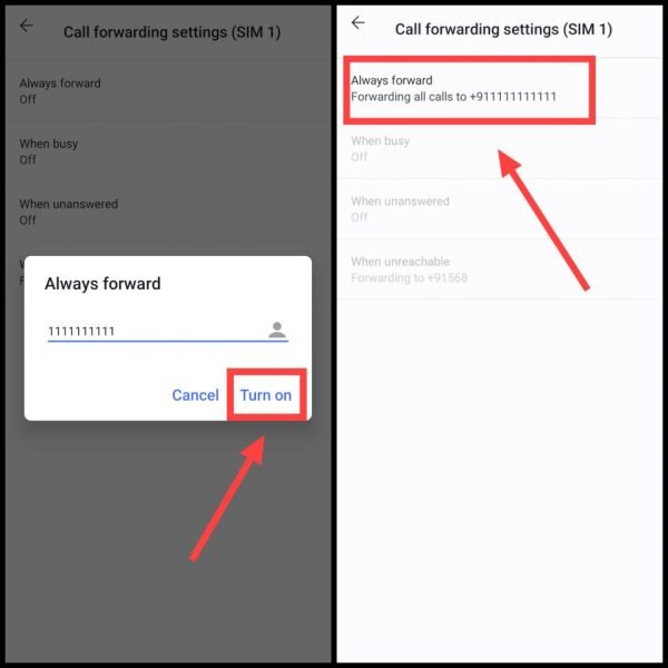 - Forward When Busy (जब नंबर बिज़ी हो): यदि आप किसी और कॉल पर व्यस्त हैं, तो कॉल किसी दूसरे नंबर पर चली जाएगी।