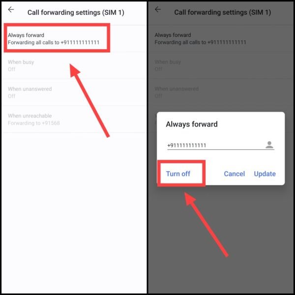 - Forward When Unreachable (नेटवर्क एरिया से बाहर हों): जब आपका नंबर नेटवर्क से बाहर होता है, तब यह ऑप्शन उपयोगी होता है।
