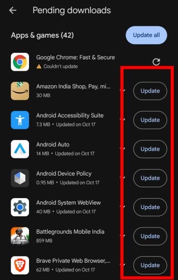 e) आपके सारे आउटडेटेड एप्स दिख जाएंगे आप एक-एक करके या सभी को एक साथ अपडेट कर सकते हैं।