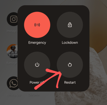 1: मोबाइल को रीस्टार्ट करने के लिए पावर बटन पर लॉन्ग प्रेस करके रखें।