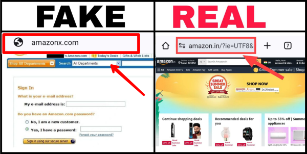 ऑनलाइन शॉपिंग फ्रॉड का जो सबसे पहला तरीका है वह फिशिंग वेबसाइट ही है। दरअसल कई सारे ऐसे स्कैमर होते हैं जो कि किसी पॉपुलर शॉपिंग वेबसाइट जैसे अमेजॉन या फ्लिपकार्ट की तरह दिखने वाली हुबहू वेबसाइट बनाते हैं। हालांकि इसका URL एड्रेस बिल्कुल अलग होता है।