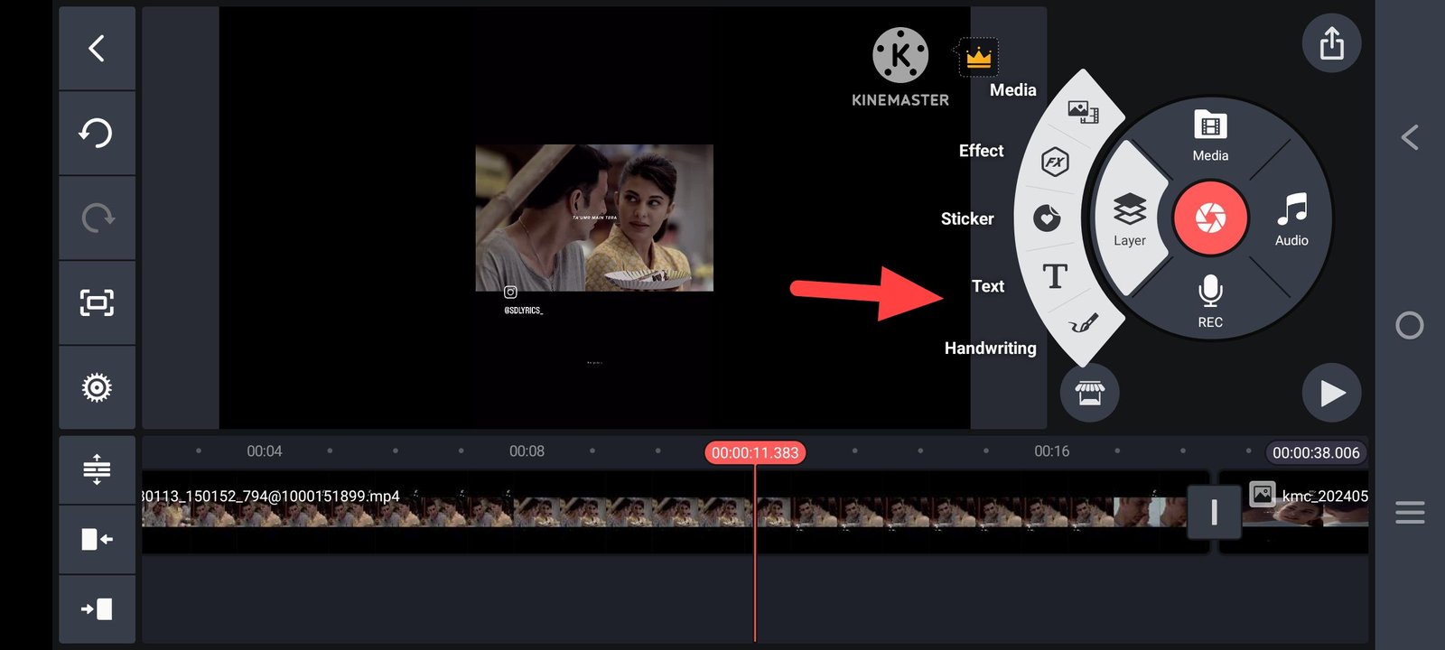 (a) टेक्स्ट ऐड करने के लिए आपको पहले Layer पर क्लिक करना होगा। उसके बाद यहां TEXT पर टैप करें।