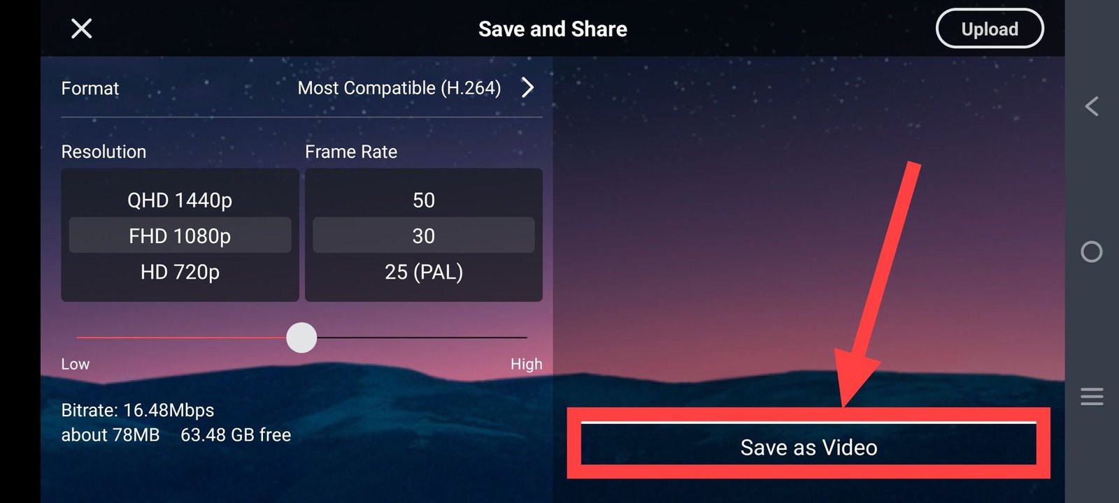 (b) अब यहां से ब्लॉग की क्वालिटी चुनें और फिर Save as video पर टैप करें।